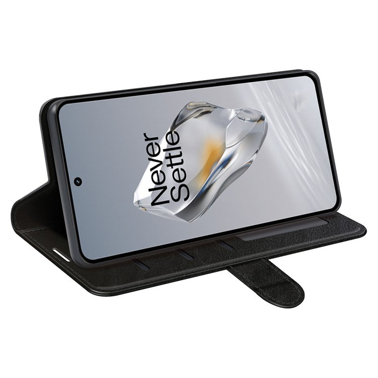 For OnePlus 12 5G PU Leather Case Magnetic Closure Phone Cover Crazy Horse Texture - Black