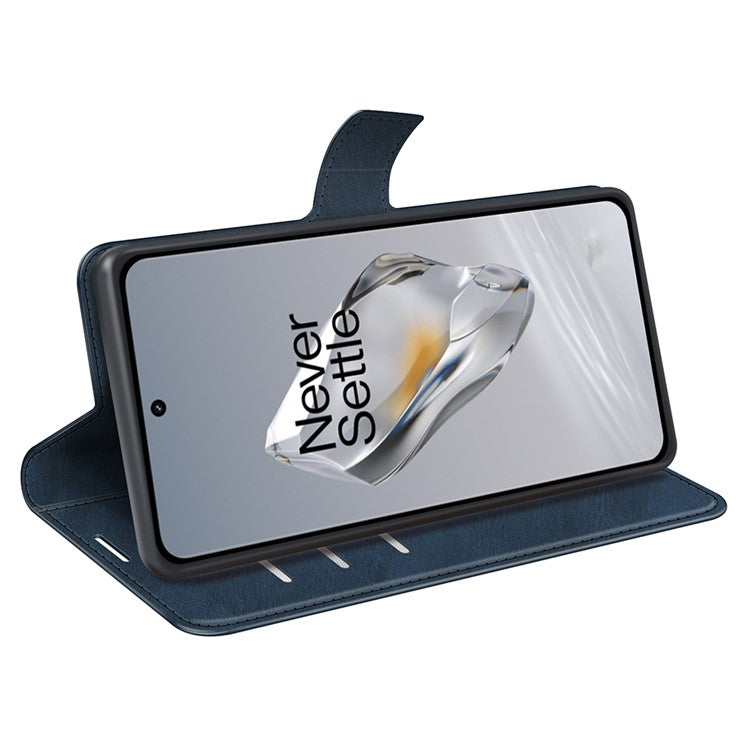For OnePlus 12 5G PU Leather Folio Cover Magnetic Buckle Flip Phone Case Wallet - Blue