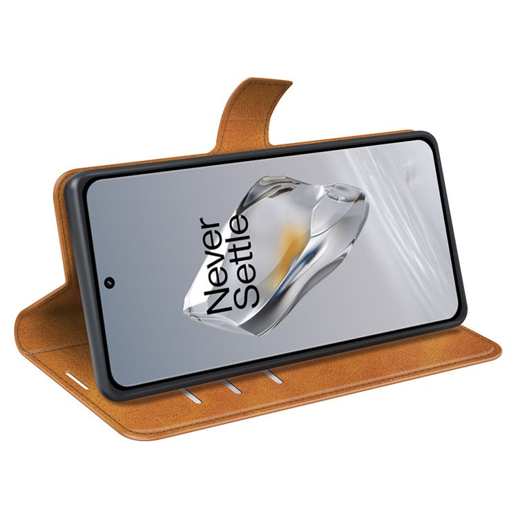 For OnePlus 12 5G PU Leather Folio Cover Magnetic Buckle Flip Phone Case Wallet - Yellow