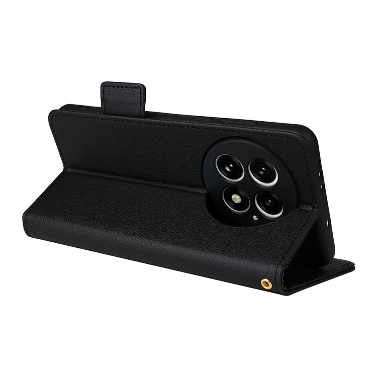 For OnePlus 13 Case Litchi Texture PU Leather Wallet Flip Phone Cover - Black