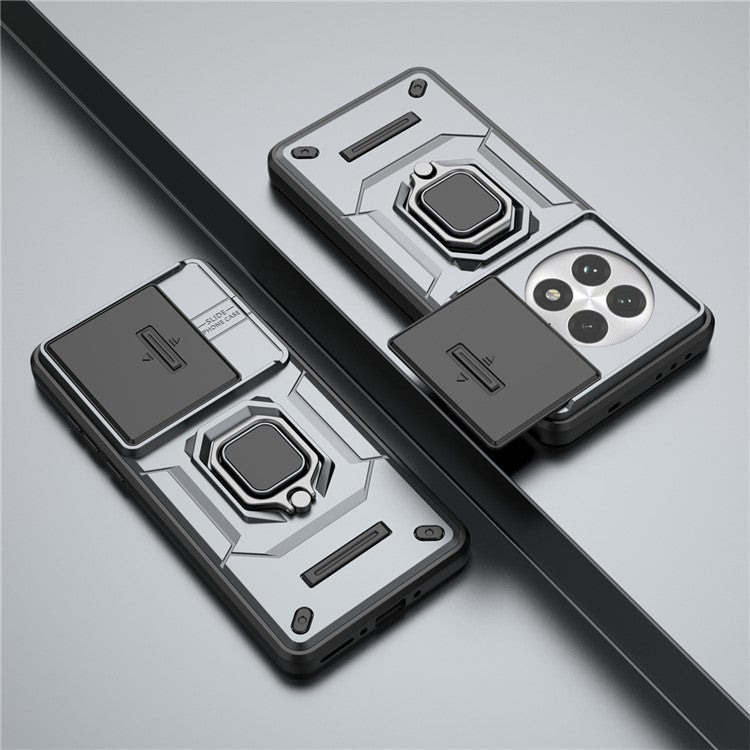 For OnePlus 13 Case PC+TPU Kickstand Phone Protector with Lens Cover - Grey