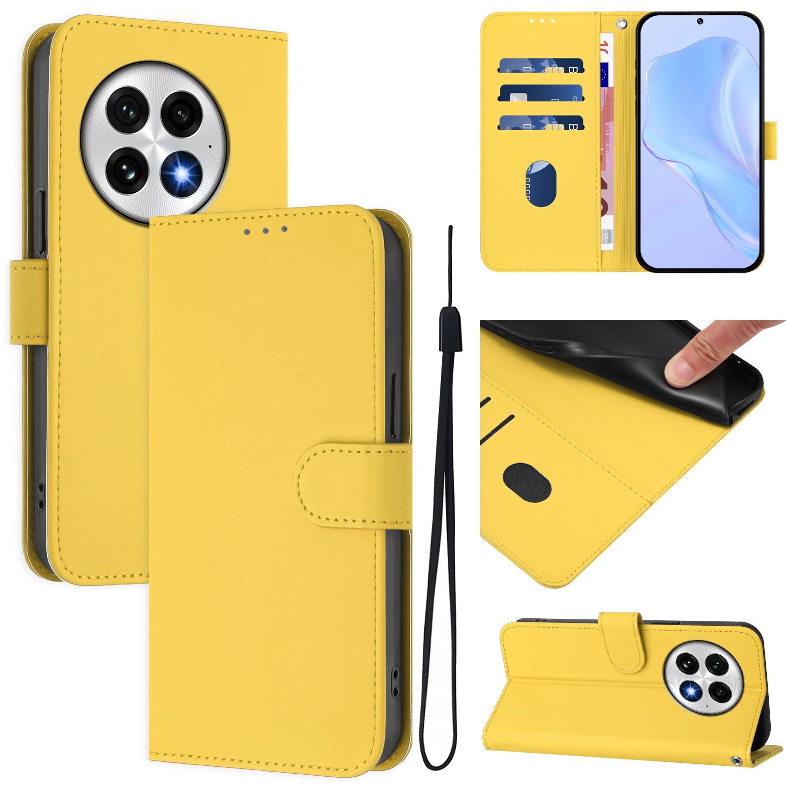 For OnePlus 13 Case Solid Color Wallet Leather Phone Cover with Strap - Lemon