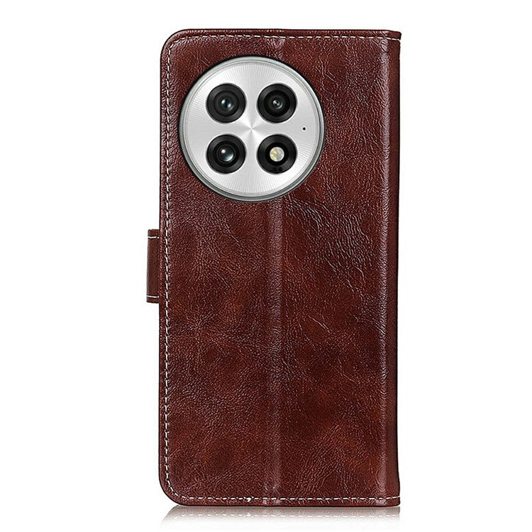 For OnePlus 13 Leather Case Wallet Phone Cover Crazy Horse Texture - Brown