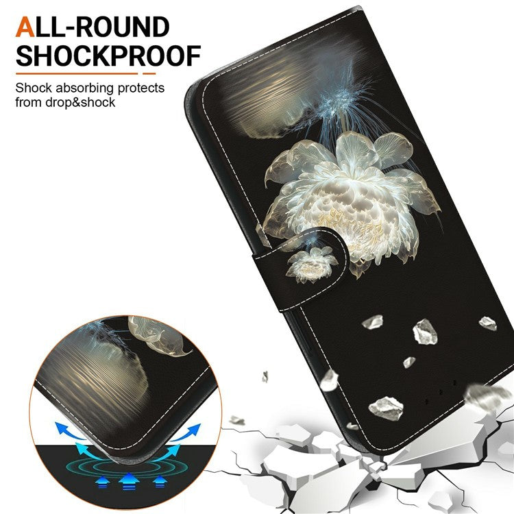 For OnePlus 13 Wallet Phone Case Anti-Drop Leather Flip Cover Pattern Printing - Crystal Peony