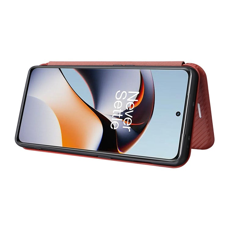 For OnePlus Ace 2 5G / 11R 5G Card Holder Phone Cover Carbon Fiber Texture Leather Phone Stand Case - Brown