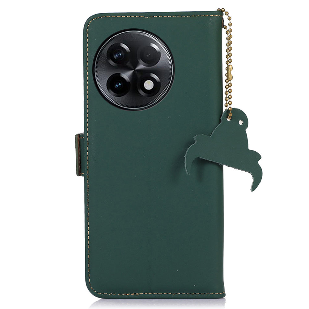 For OnePlus Ace 2 5G / 11R 5G Phone Case Genuine Cow Leather Wallet RFID Blocking Stand Magnetic Flip Cover - Green