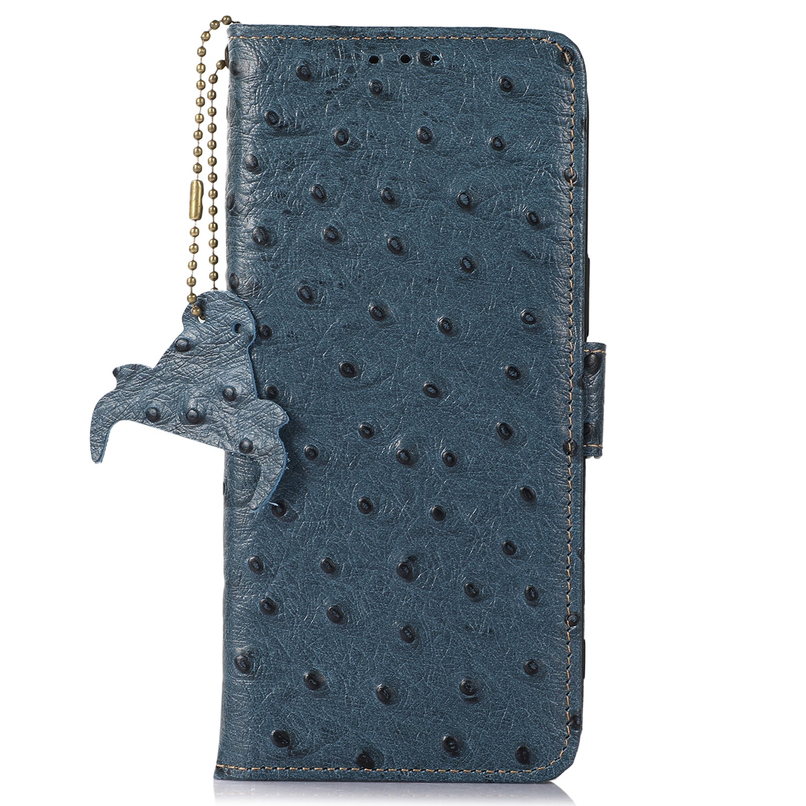 - Made of premium genuine cowhide leather with delicate ostrich texture and TPU offers a good hand feeling and comes with a small chain decoration