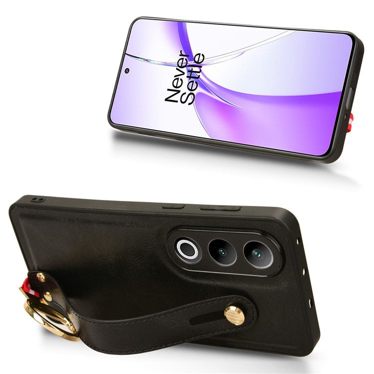 For OnePlus Ace 3V 5G Case Wristband Kickstand Leather Coated PC+TPU Protective Cover - Black