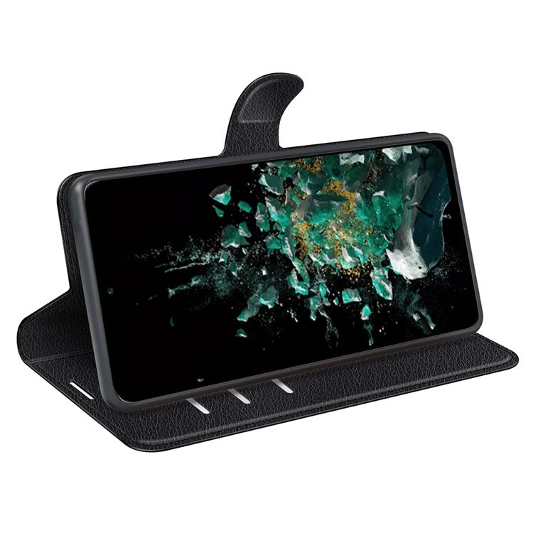 For OnePlus Ace Pro 5G / 10T 5G Litchi Texture Folio Flip Phone Case PU Leather Wallet Stand Protective Cover - Black