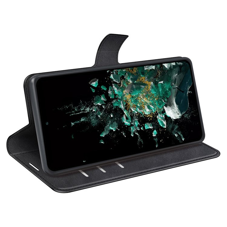 For OnePlus Ace Pro 5G / 10T 5G Square Magnetic Clasp Folio Flip Textured PU Leather Cover Inner TPU Phone Case with Wallet Stand - Black