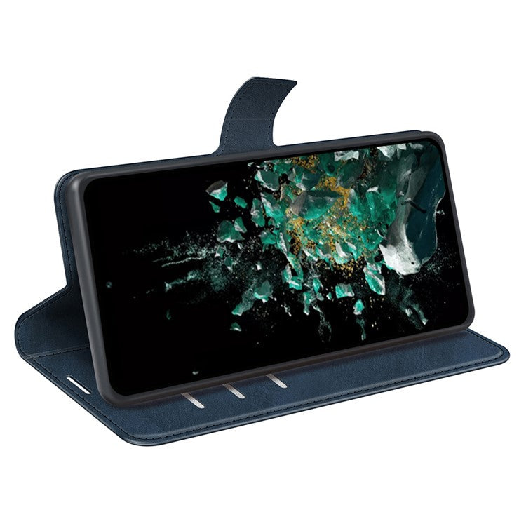 For OnePlus Ace Pro 5G / 10T 5G Square Magnetic Clasp Folio Flip Textured PU Leather Cover Inner TPU Phone Case with Wallet Stand - Blue