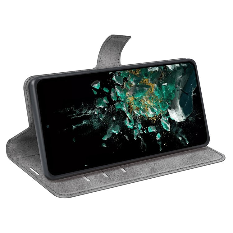 For OnePlus Ace Pro 5G / 10T 5G Square Magnetic Clasp Folio Flip Textured PU Leather Cover Inner TPU Phone Case with Wallet Stand - Grey
