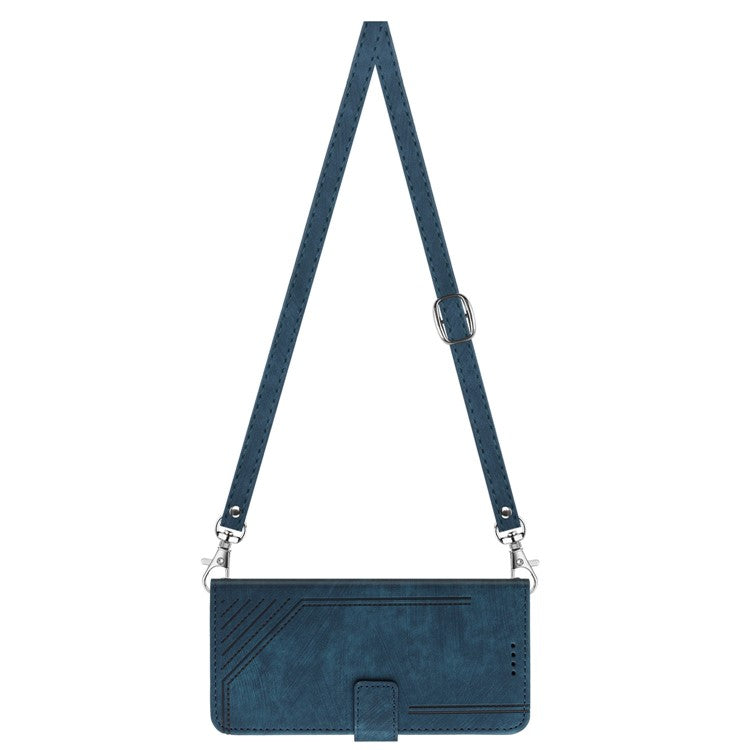 For OnePlus Ace Pro 5G / 10T 5G Wallet Phone Stand Case Lines Imprinted PU Leather Cover with Straps - Sapphire