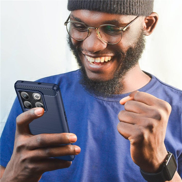 For OnePlus Ace Pro 5G Phone Shell Cover Anti-fingerprint Brushed Carbon Fiber Texture Soft TPU Phone Case - Blue