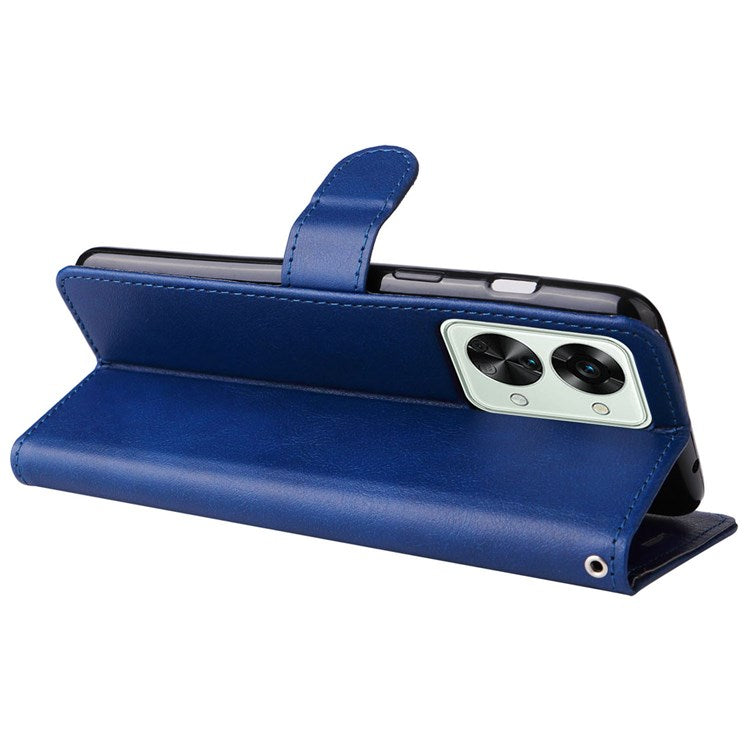 For OnePlus Nord 2T 5G KT Leather Series-2 Leather Stand Phone Case, Wallet Design Magnetic Clasp Leather Phone Case with Handy Strap - Blue