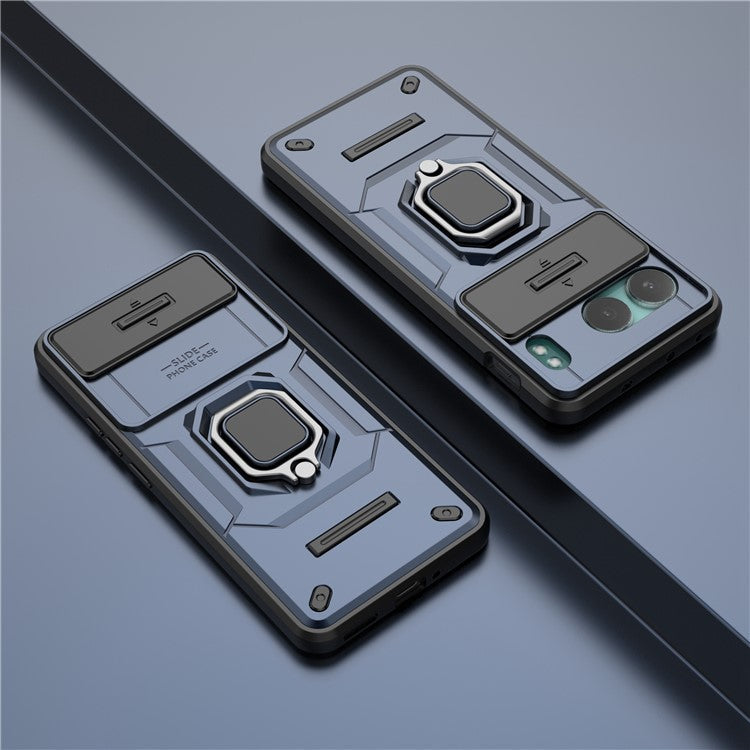 For OnePlus Nord 4 Case PC+TPU Kickstand Phone Protector with Lens Cover - Blue