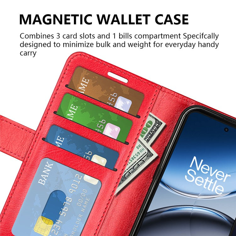 For OnePlus Nord 4 Wallet Case Crazy Horse Texture Stand Leather Phone Cover - Red