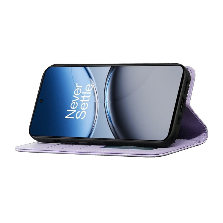 For OnePlus Nord 4 Wallet Phone Case Strong Magnetic Checkered Pattern Imprint Leather Flip Cover - Purple
