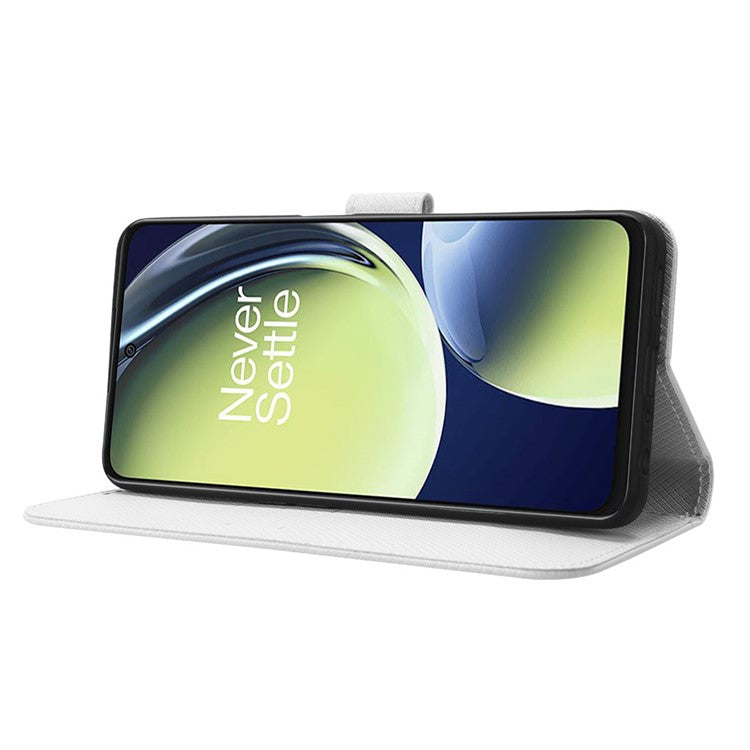 For OnePlus Nord CE 3 Lite 5G / Nord N30 5G Phone Case Wallet Stand Diamond Texture Phone Leather Cover - White