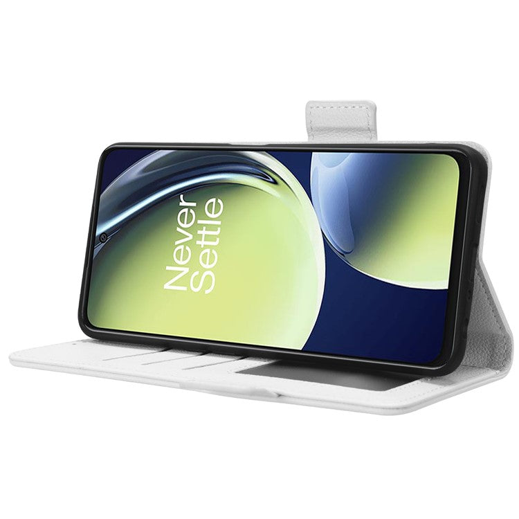 For OnePlus Nord CE 3 Lite 5G / Nord N30 5G PU Leather Case Litchi Texture Wallet Stand Phone Cover - White
