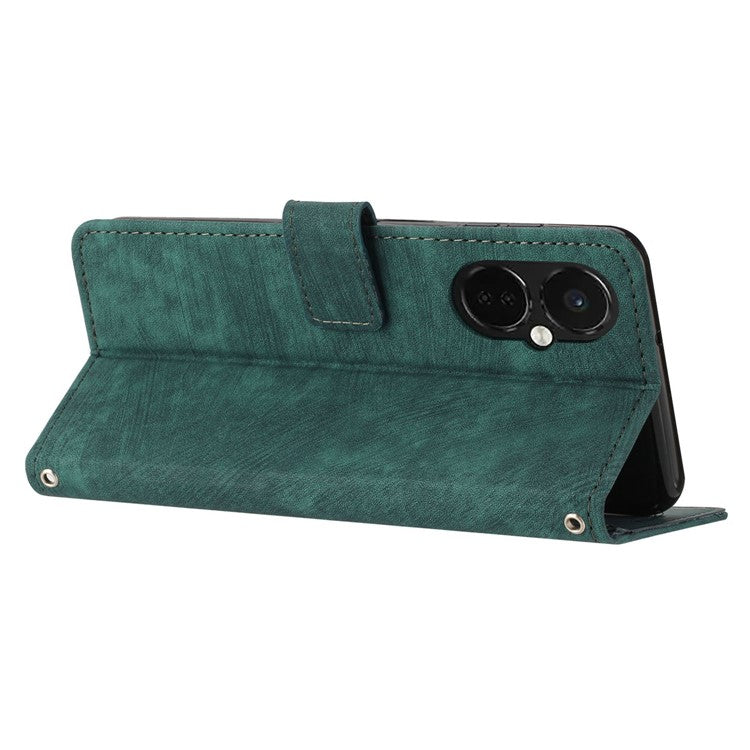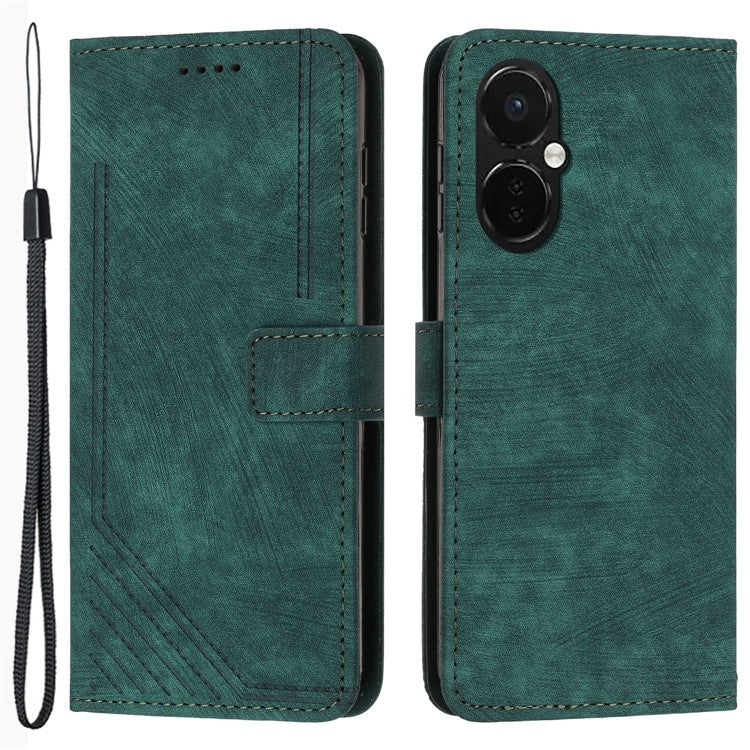 For OnePlus Nord CE3 5G / CE 3 Lite 5G / Nord N30 5G PU Leather Skin-touch Stand Imprinted Lines Wallet Phone Cover - Green