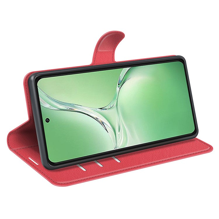 For OnePlus Nord CE4 5G / Oppo K12 Case Litchi Grain Leather Folio Flip Phone Cover - Red