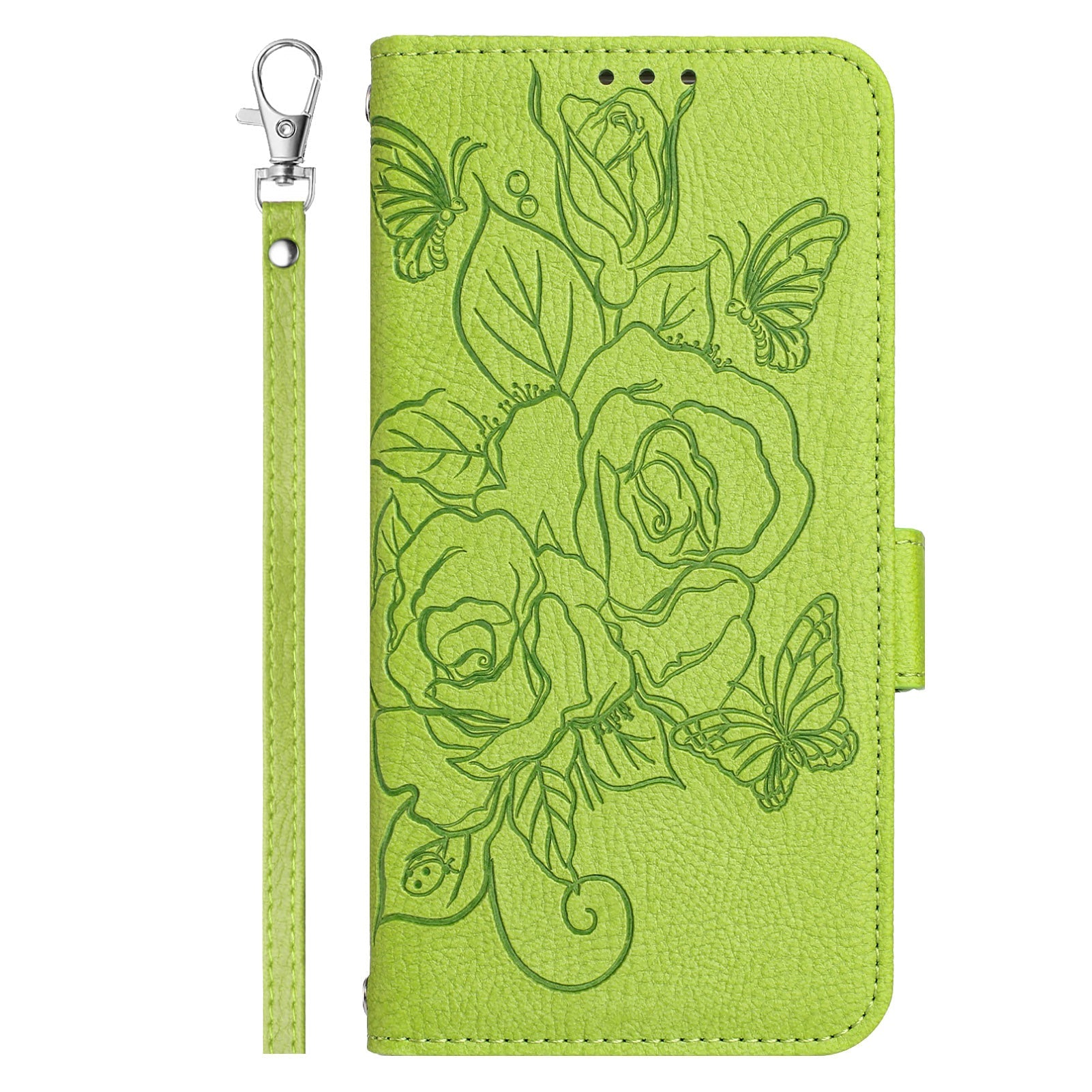 For OnePlus Nord CE4 Lite 5G Case Rose Imprinted RFID Blocking Leather Phone Cover with Strap - Green