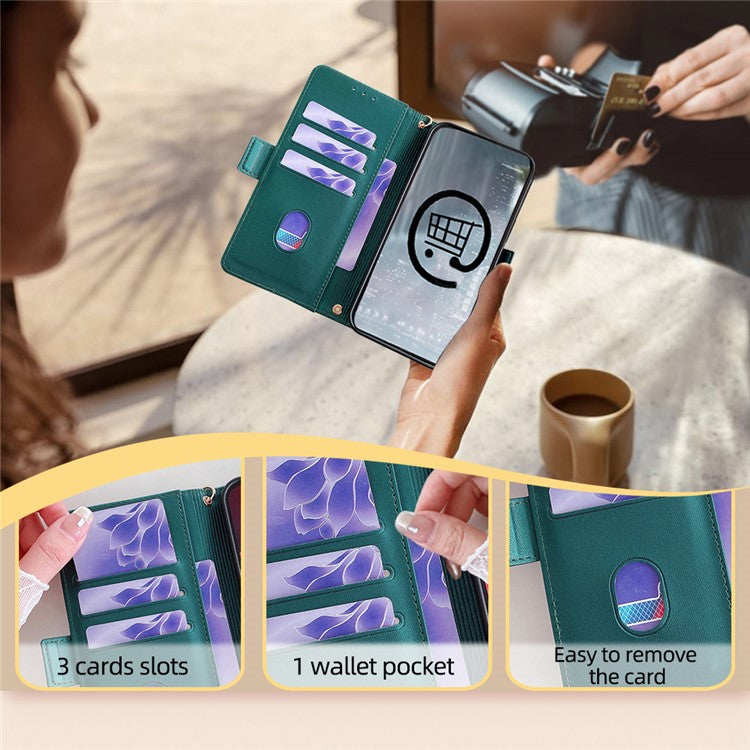 For OnePlus Nord CE4 Lite 5G / Oppo K12x 5G (China) Case PU Leather Wallet Stand Phone Cover with Crossbody Shoulder Strap - Green