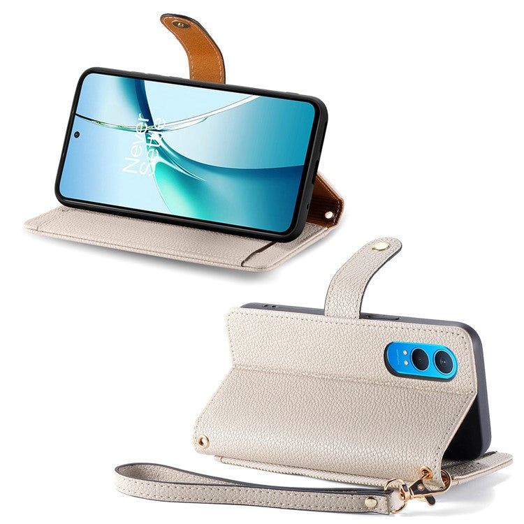 For OnePlus Nord CE4 Lite 5G / Oppo K12x 5G (China) Case RFID Blocking Zipper Pocket Leather Wallet Phone Cover - Grey
