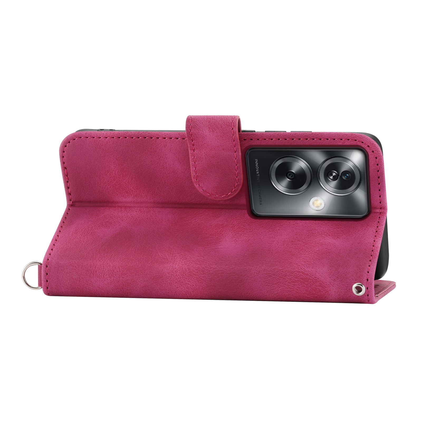 For Oppo A2 5G Wallet Case Flower Pattern PU Leather Wallet Phone Cover with Shoulder Strap - Wine Red