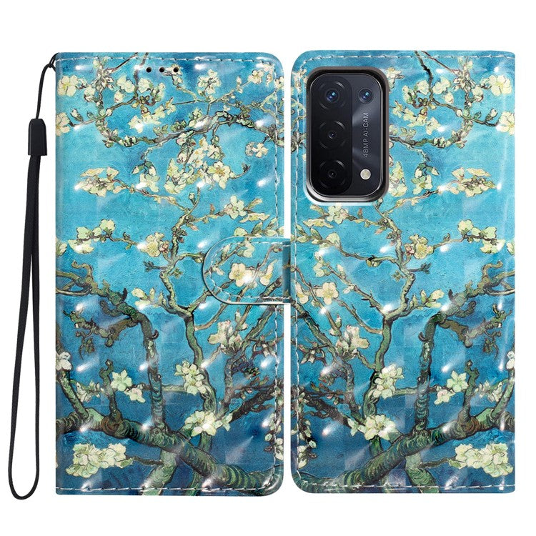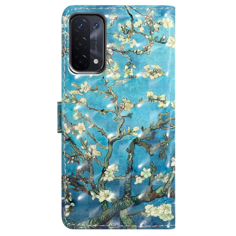 For Oppo A54 5G / A74 5G / A93 5G Case PU Leather 3D Pattern Wallet Phone Cover - Apricot Blossom