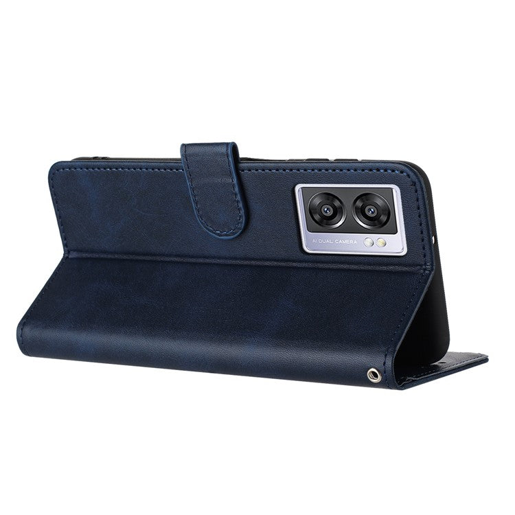 For Oppo A57 (2022) 5G / A77 5G / A57 4G / A57e 4G / A57s 4G / A77 4G / A77s 4G / OnePlus Nord N20 SE 4G Leather Phone Stand Case - Sapphire