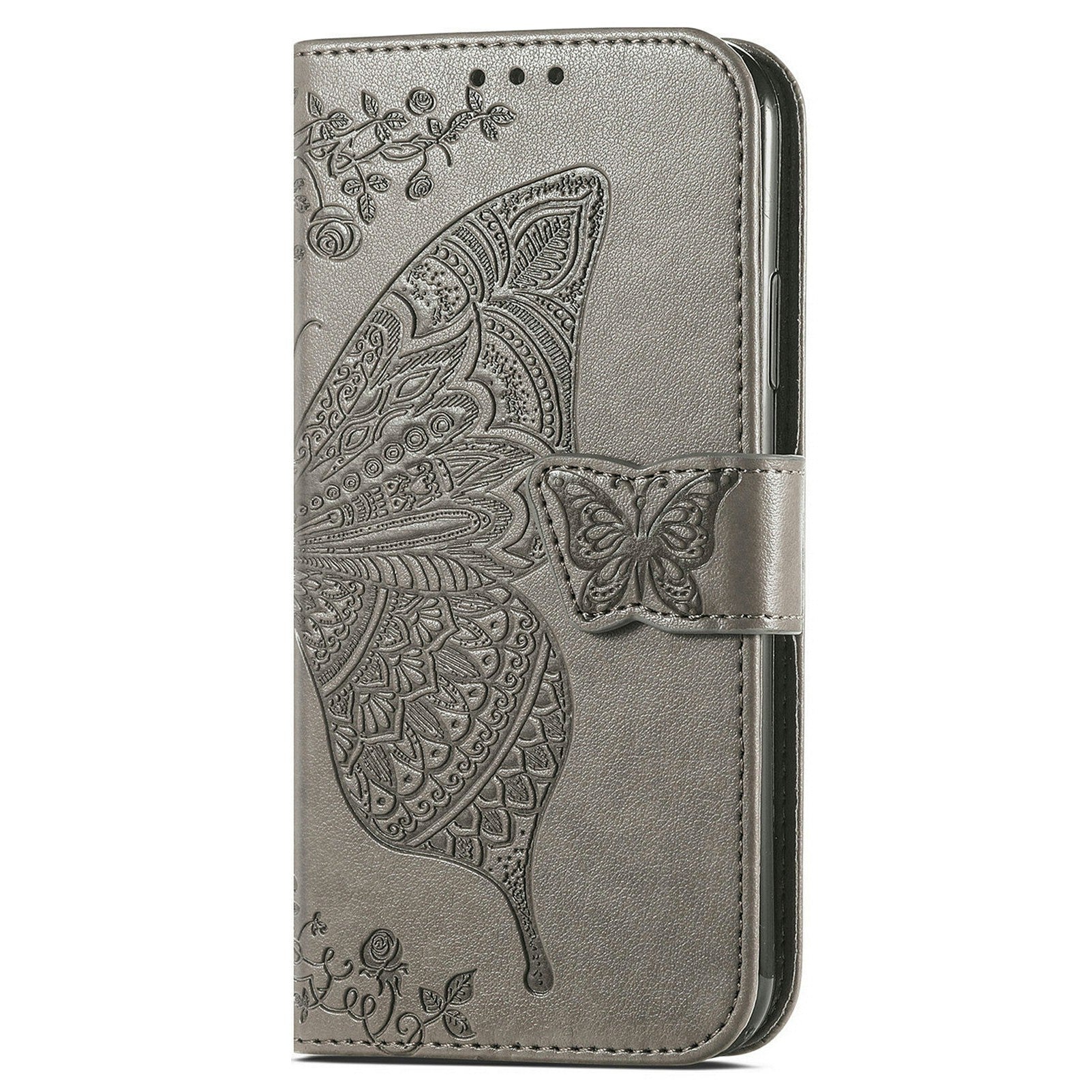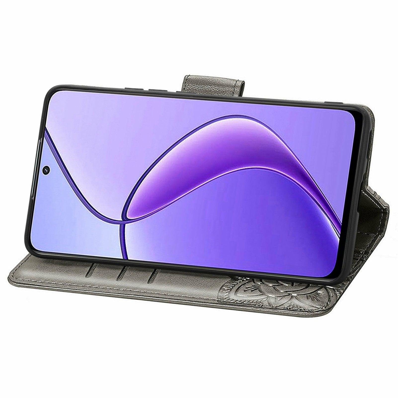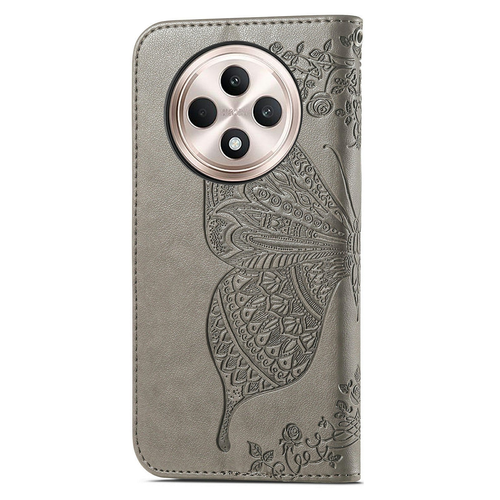 For Oppo F27 5G Case PU Leather Wallet Phone Cover Butterfly Pattern - Grey