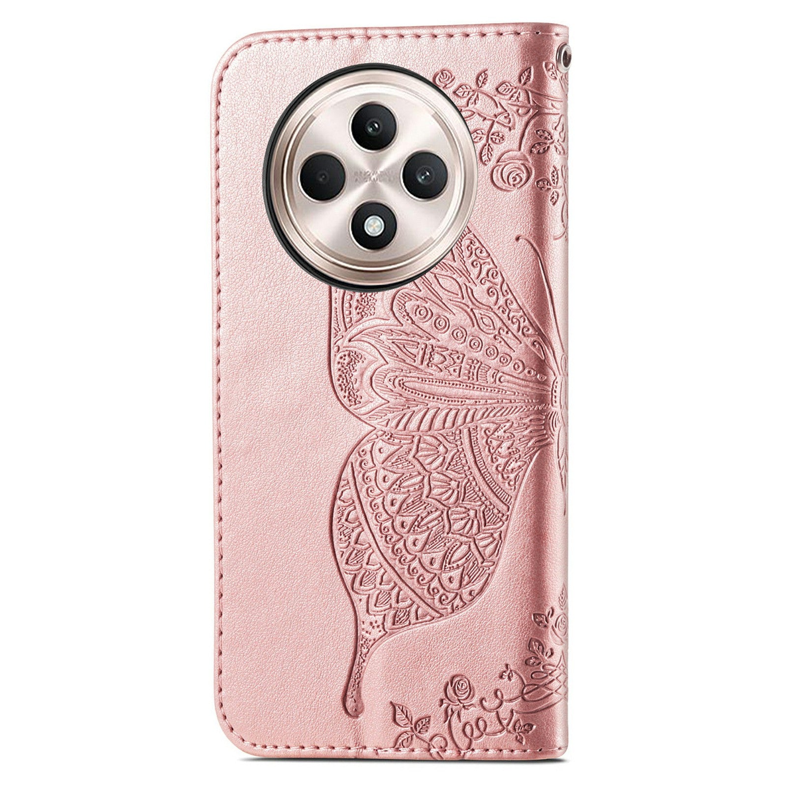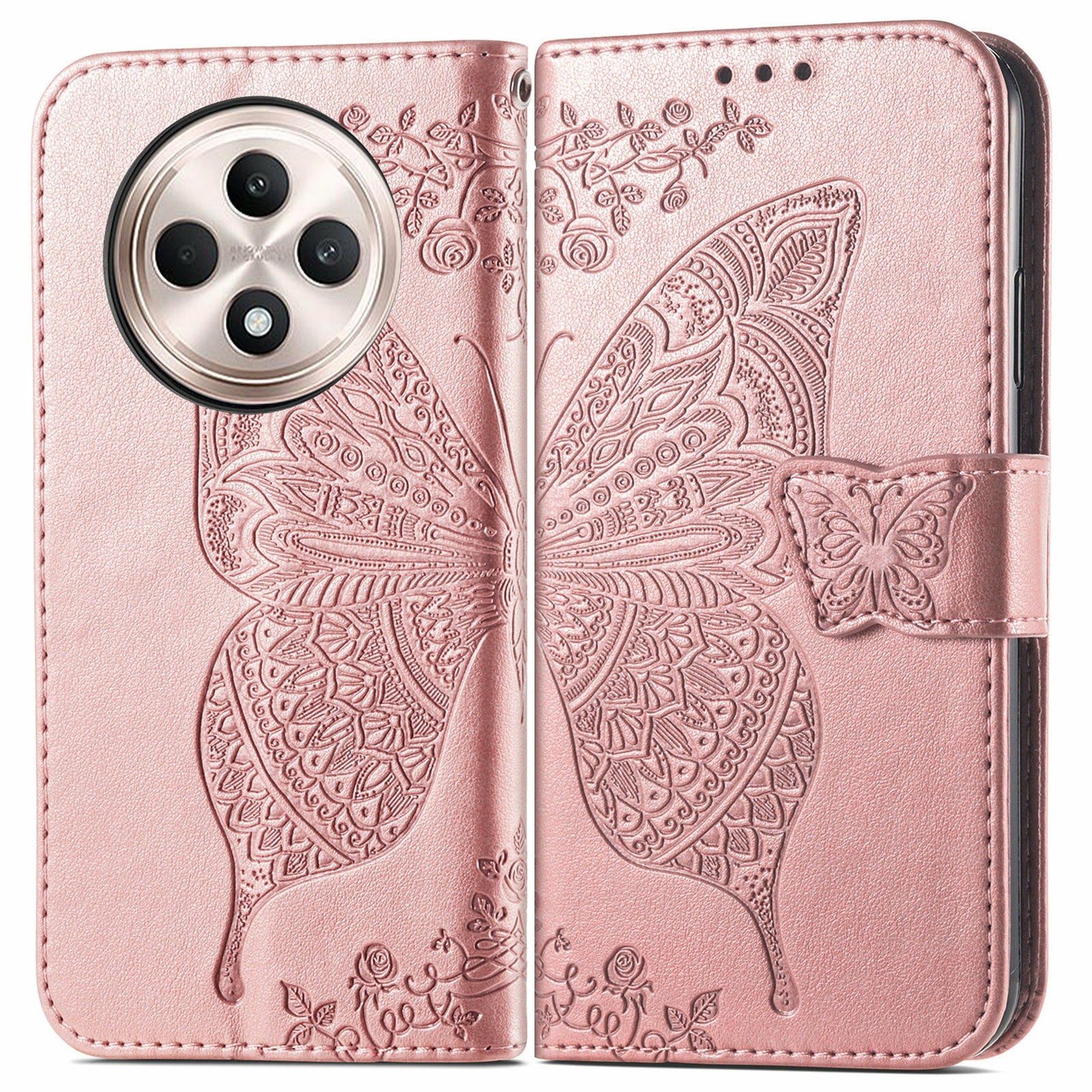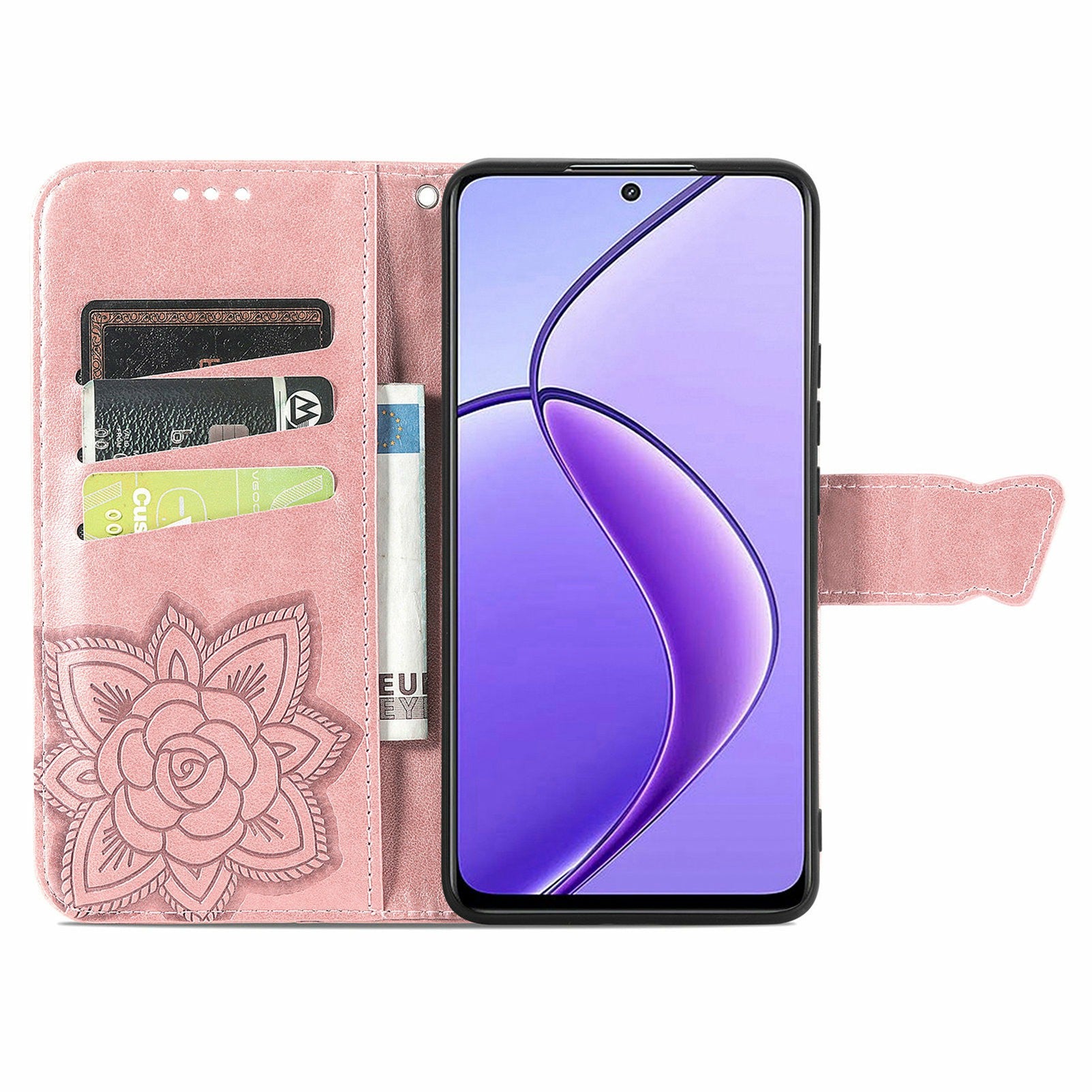 For Oppo F27 5G Case PU Leather Wallet Phone Cover Butterfly Pattern - Rose Gold
