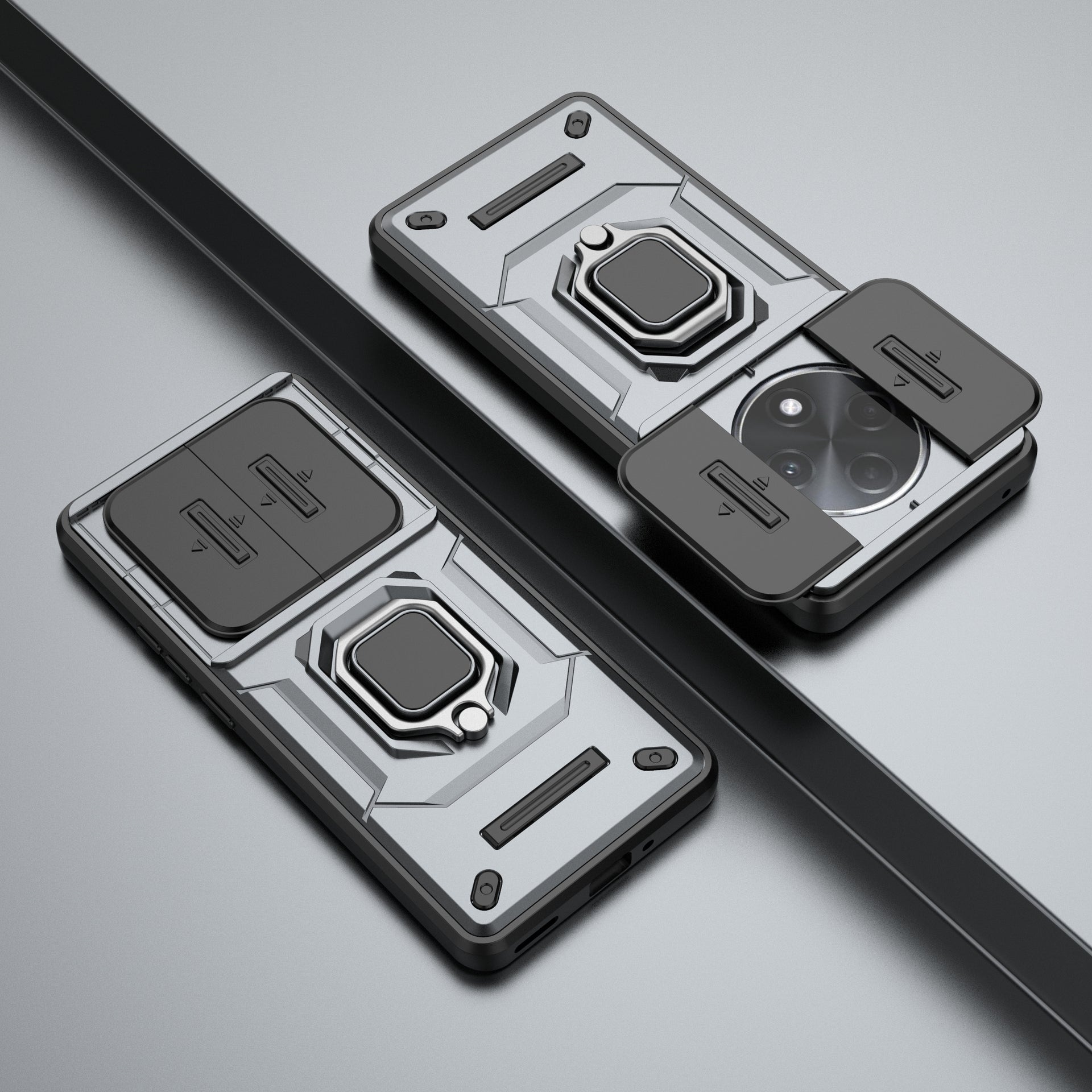 For Oppo F27 Pro+ 5G Case Kickstand PC+TPU Phone Shell with Lens Cover - Grey
