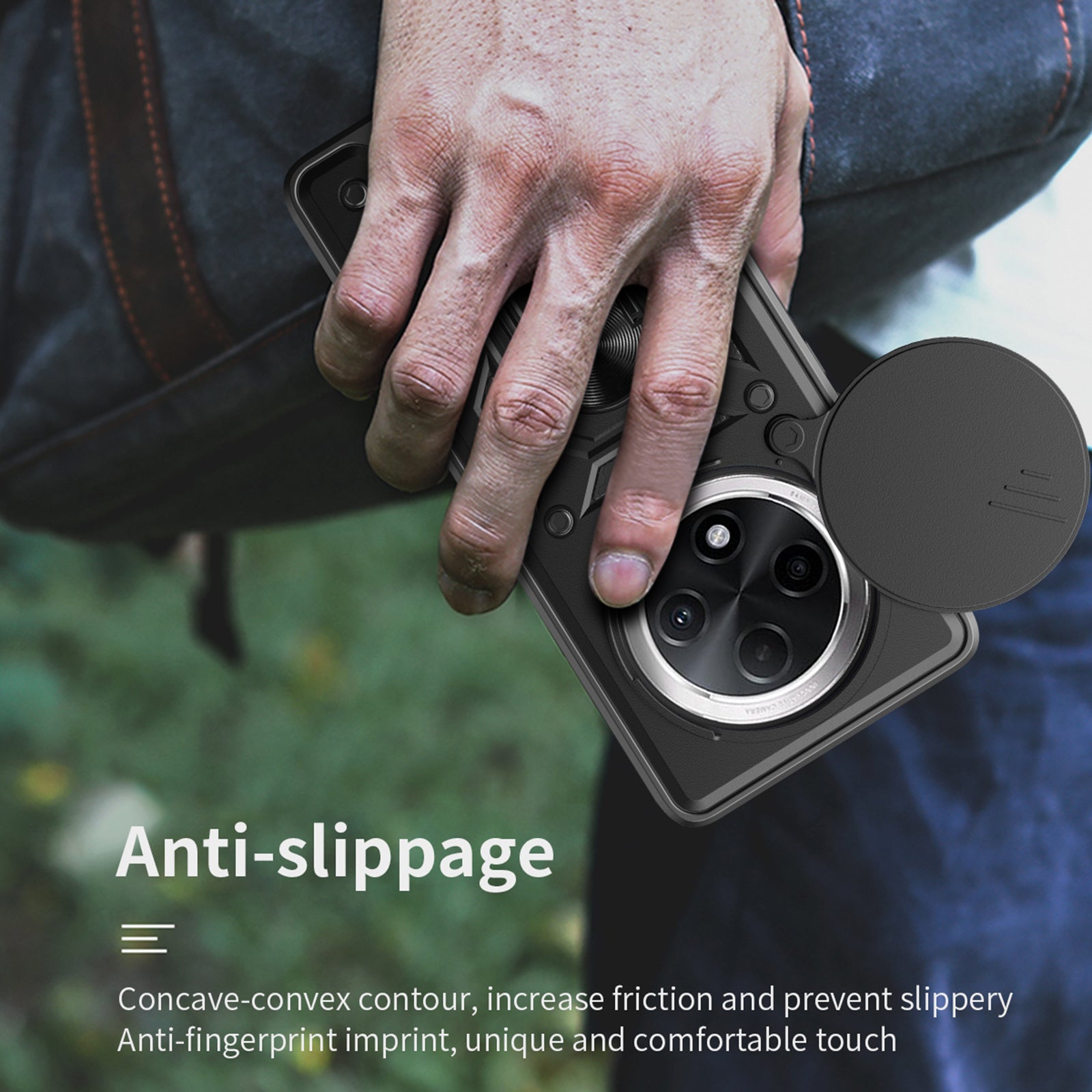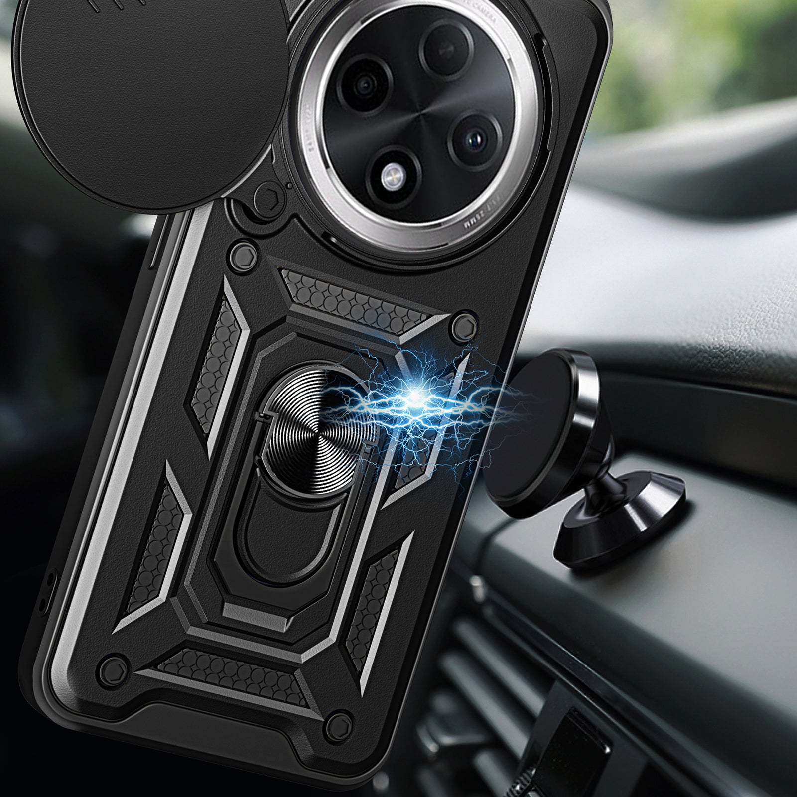 For Oppo F27 Pro 5G / F27 Pro+ 5G Case with Slide Camera Lid PC+TPU Kickstand Phone Cover - Black