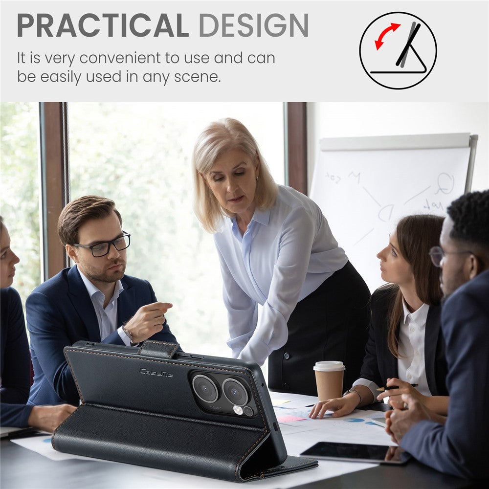 For Oppo Reno13 F 4G / Oppo Reno13 F 5G Case CASEME 023 Series RFID Blocking Leather Wallet Stand Phone Cover - Black