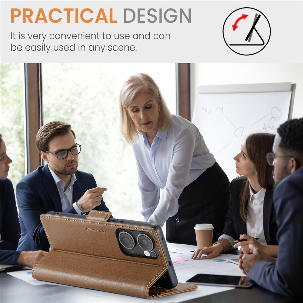 For Oppo Reno13 F 4G / Oppo Reno13 F 5G Case CASEME 023 Series RFID Blocking Leather Wallet Stand Phone Cover - Brown