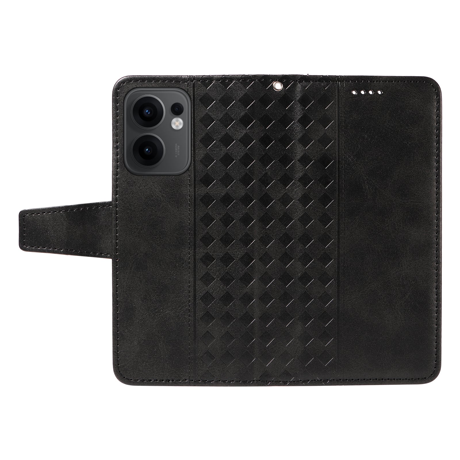For Oppo Reno13 F 4G / Oppo Reno13 F 5G Leather Case Wallet Stand Grids Imprinted Phone Cover with Strap - Black
