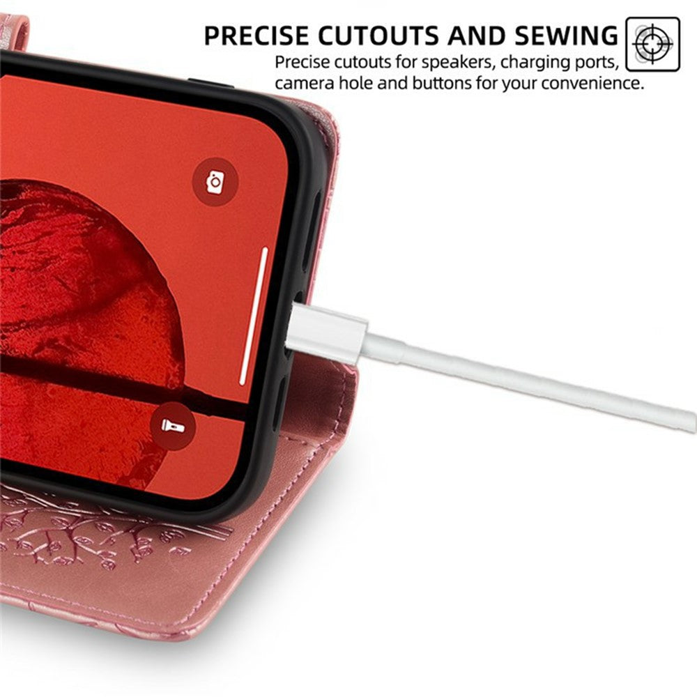 For Oppo Reno13 F 5G / 4G Case PU Leather Wallet Phone Cover Tree Deer Imprinted - Rose Gold
