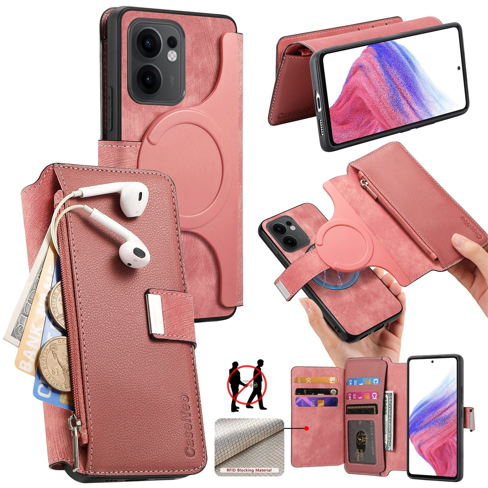 For Oppo Reno13 F 5G Case CASENEO MW-02 Detachable Magnetic Leather Flip Phone Cover - Pink