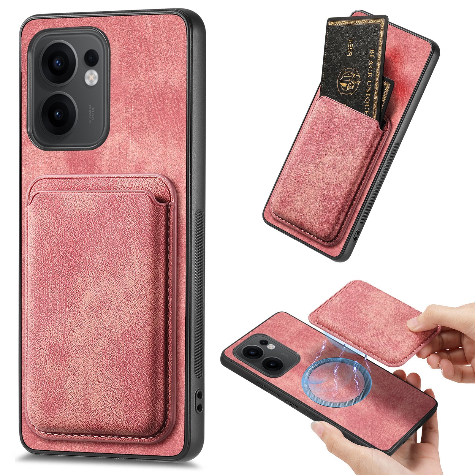 For Oppo Reno13 F 5G Case Compatible with MagSafe Leather Back Cover with Detachable Card Holder - Pink