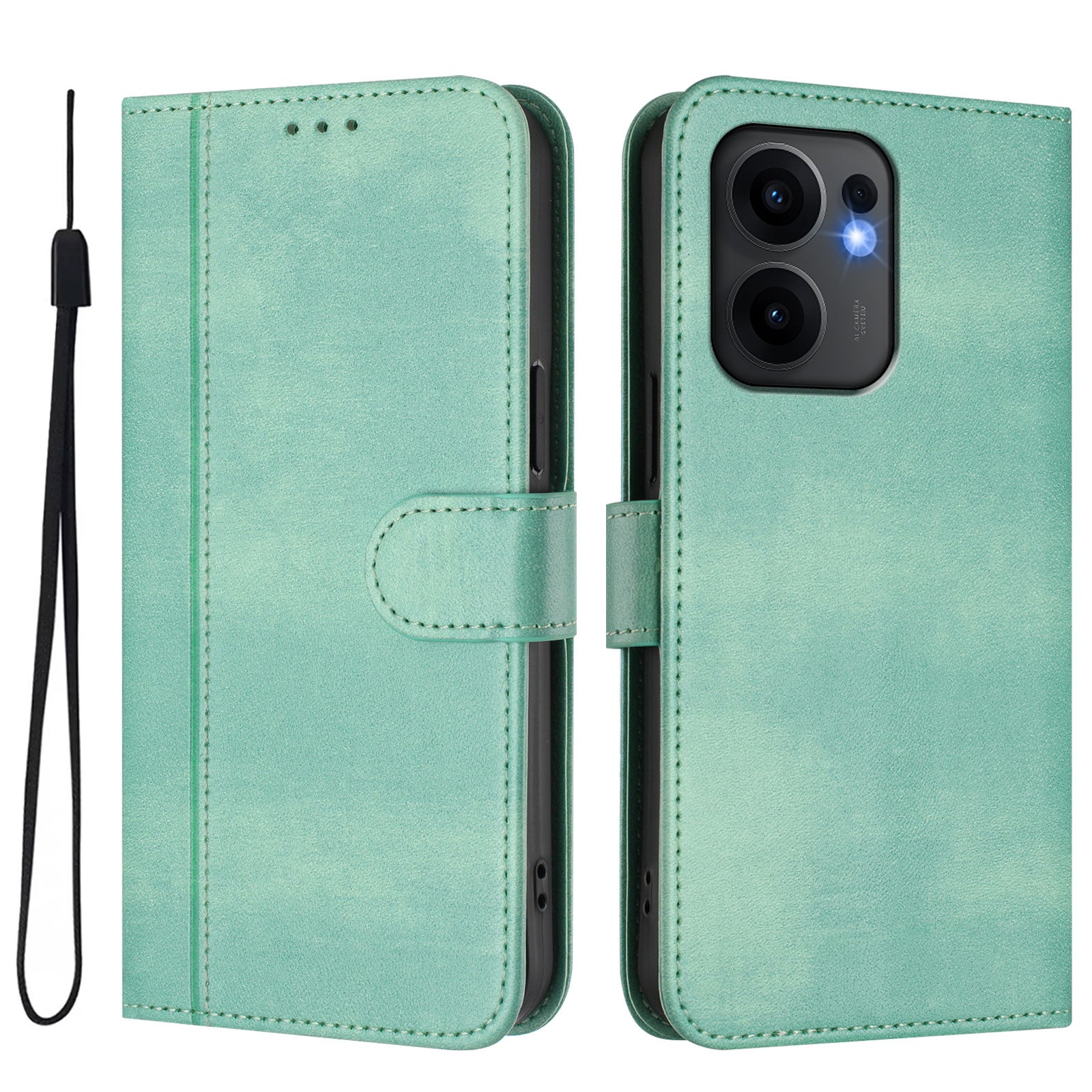 For Oppo Reno13 F 5G Cases Wallet Stand Retro Texture Leather Phone Cover with Lanyard - Mint Green