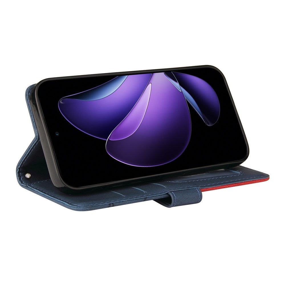 For Oppo Reno13 F 5G Leather Phone Case Stand Wallet with Bi-colour Splicing Design - Blue