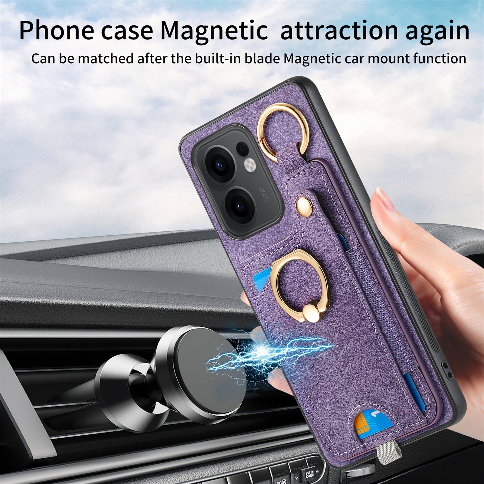 For Oppo Reno13 F 5G Retro Leather Phone Back Cover with Card Slots and Ring Holder - Purple