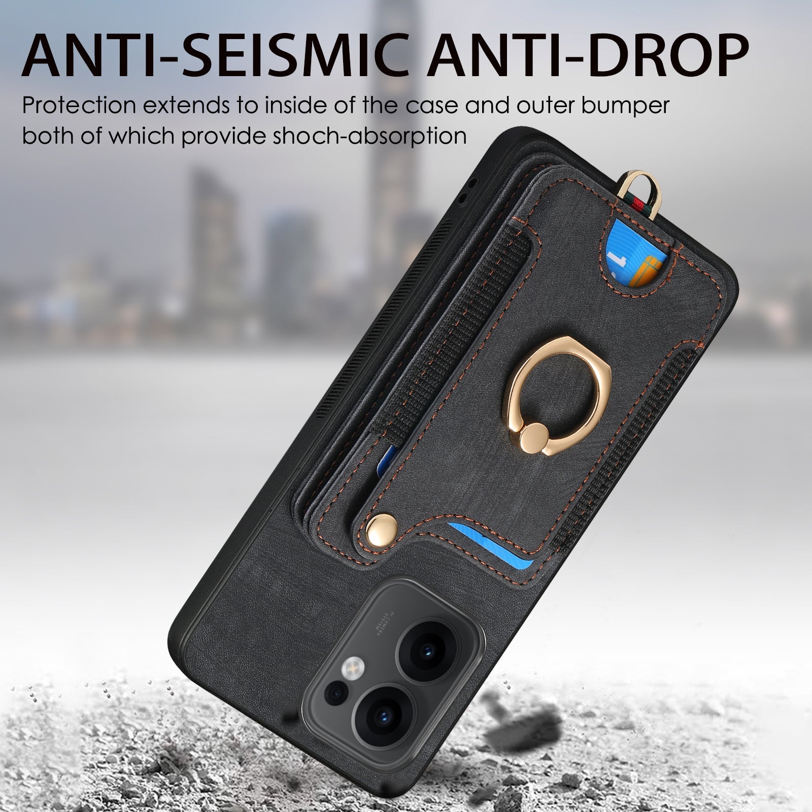 For Oppo Reno13 F 5G Retro PU Leather Back Cover with RFID Blocking Card Holder - Black