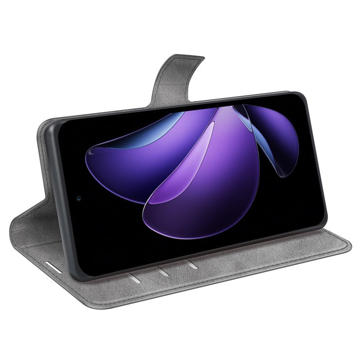 For Oppo Reno13 F 5G Stand Case Anti-Scratch Calf Texture Leather Phone Cover - Grey