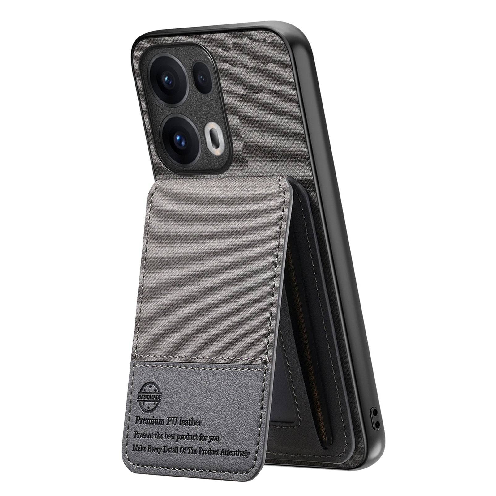 For Oppo Reno13 Pro 5G Case Cloth Texture Leather + PC + TPU RFID Blocking Phone Cover with Card Holder - Grey