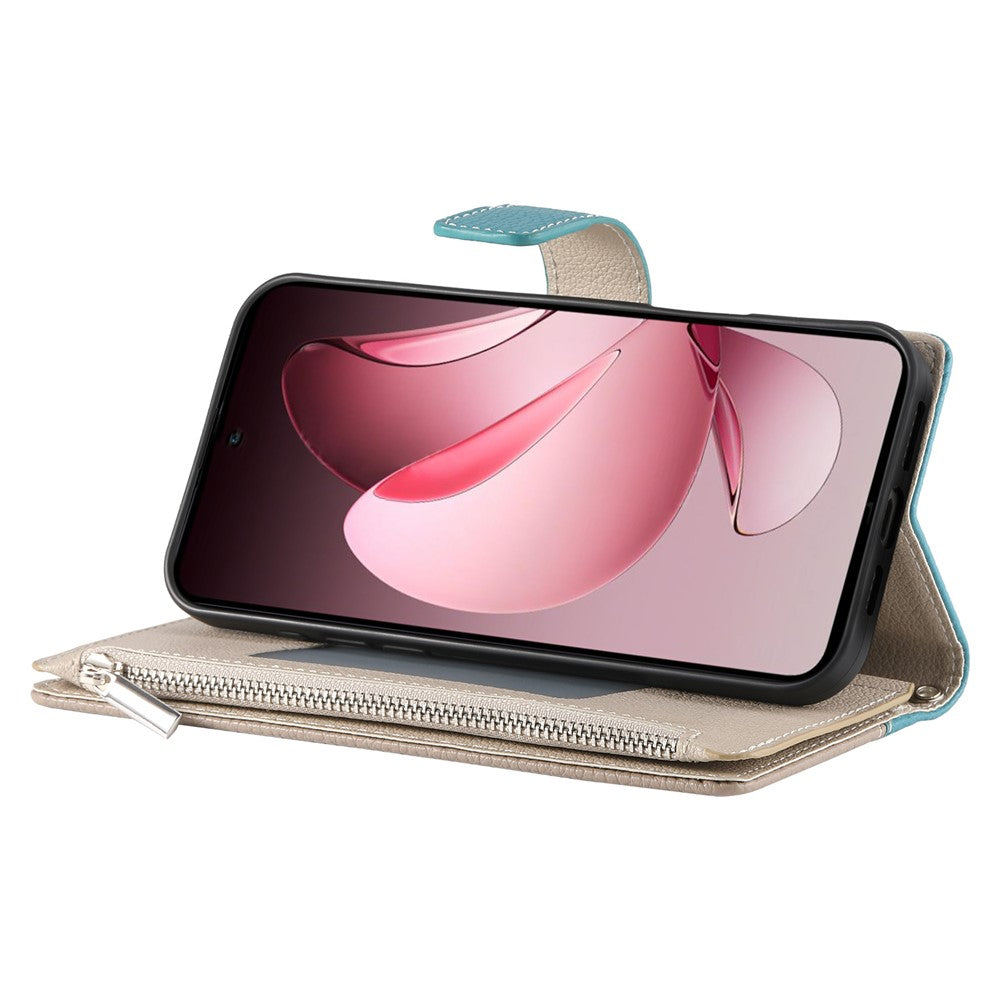 For Oppo Reno13 Pro 5G Case Zipper Wallet Color Splicing Leather Flip Phone Cover with Straps - Lake Blue