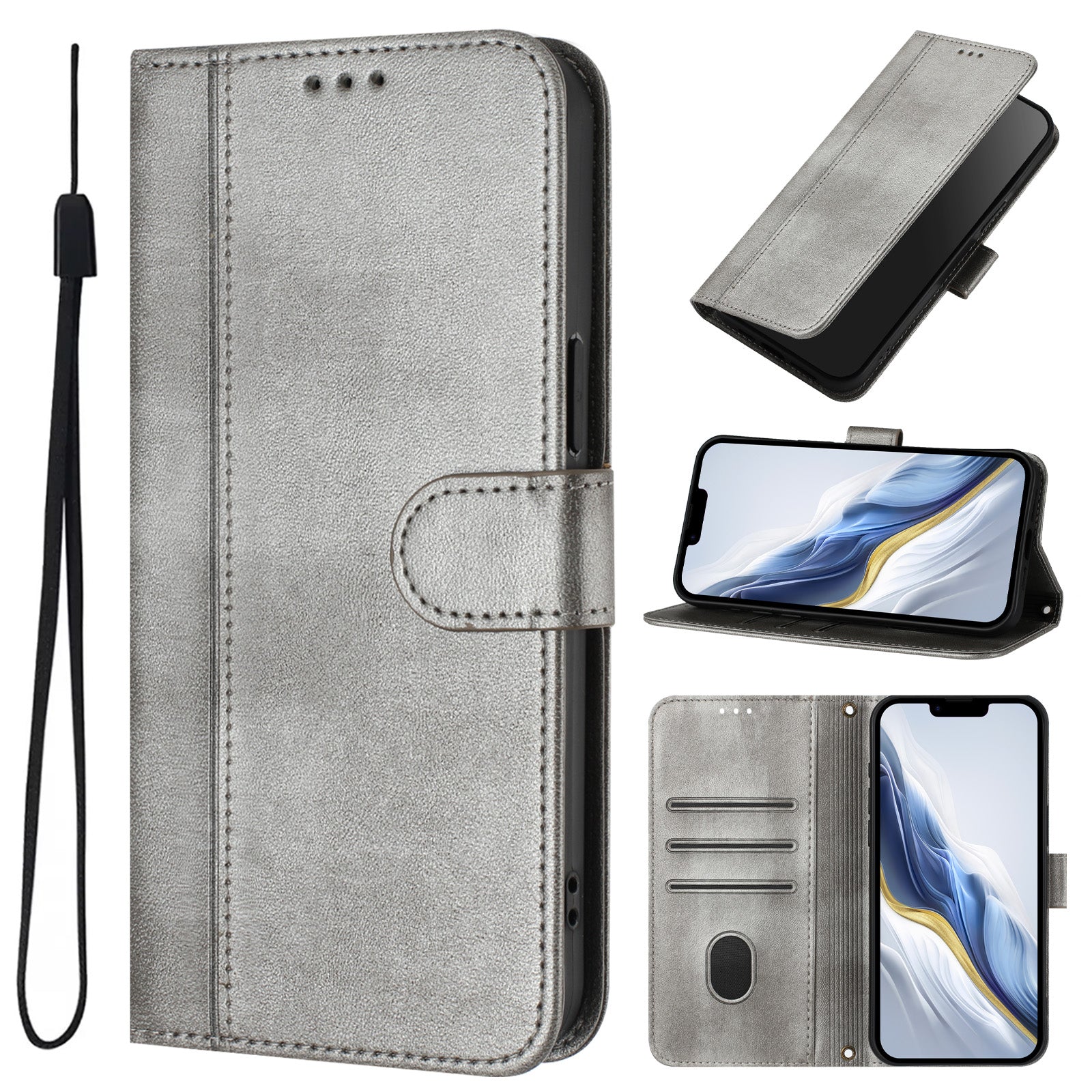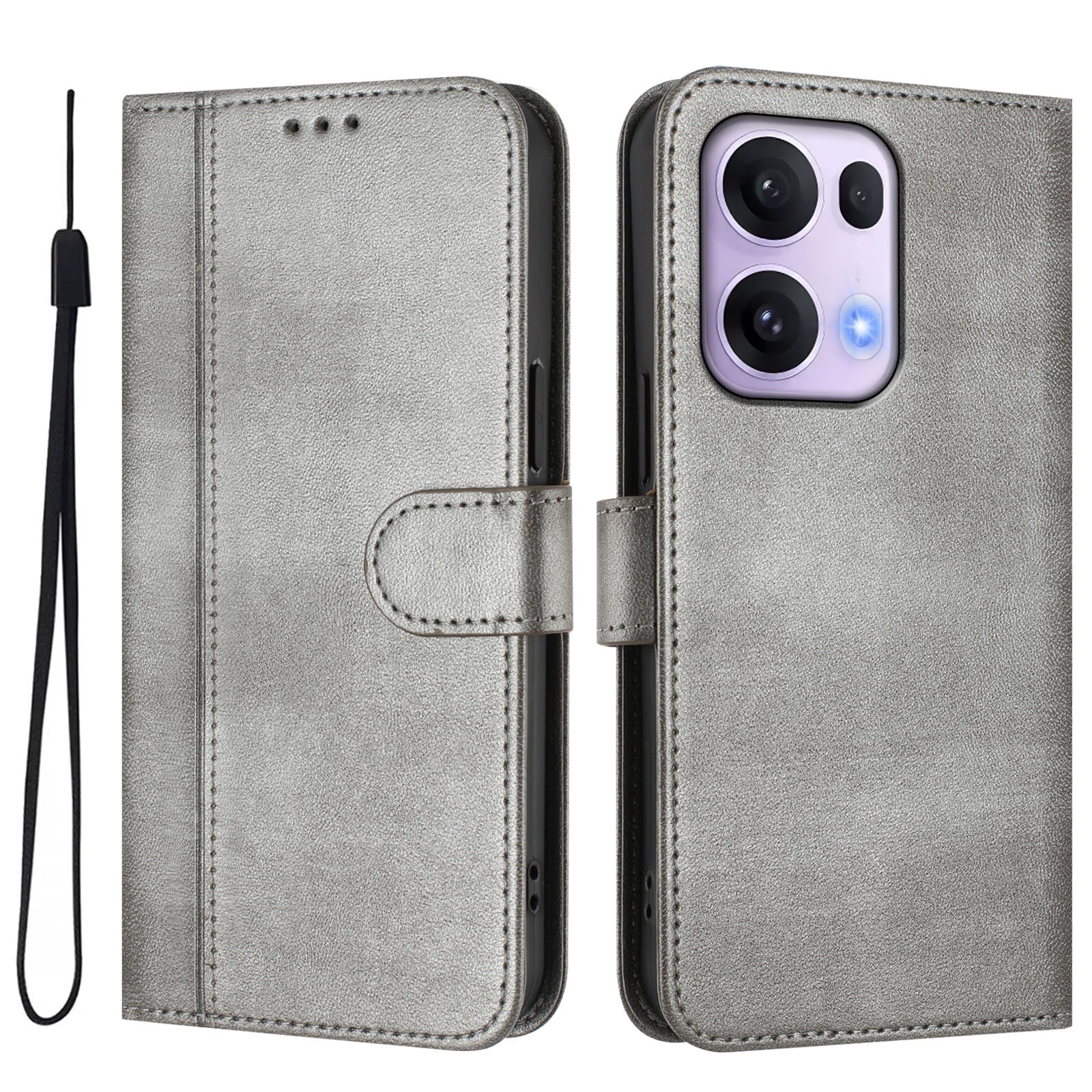 For Oppo Reno13 Pro 5G Cases Wallet Stand Retro Texture Leather Phone Cover with Lanyard - Grey